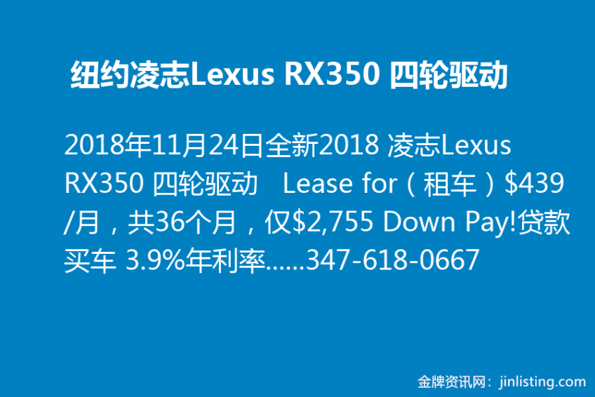 纽约凌志Lexus RX350 四轮驱动:347-618-0667