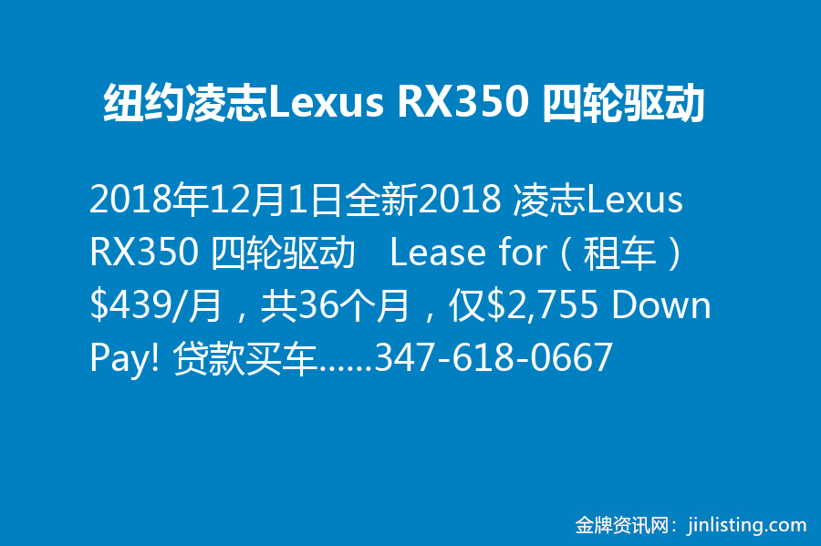 纽约凌志Lexus RX350 四轮驱动:347-618-0667