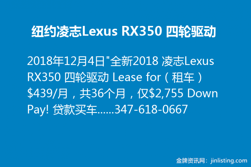 纽约凌志Lexus RX350 四轮驱动:347-618-0667