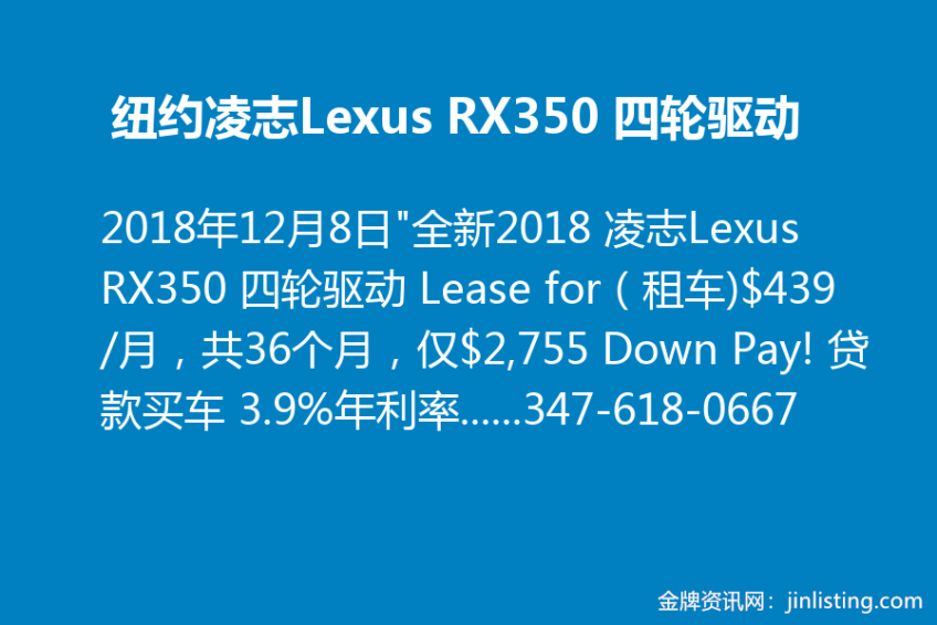 纽约凌志Lexus RX350 四轮驱动:347-618-0667