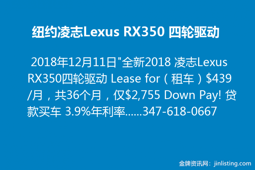 纽约凌志Lexus RX350 四轮驱动:347-618-0667