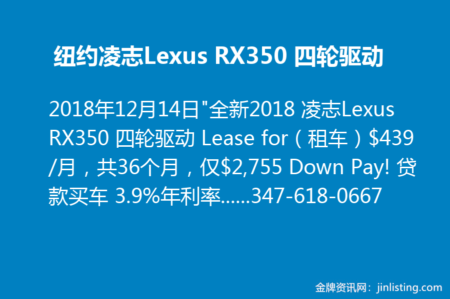 纽约凌志Lexus RX350 四轮驱动:347-618-0667