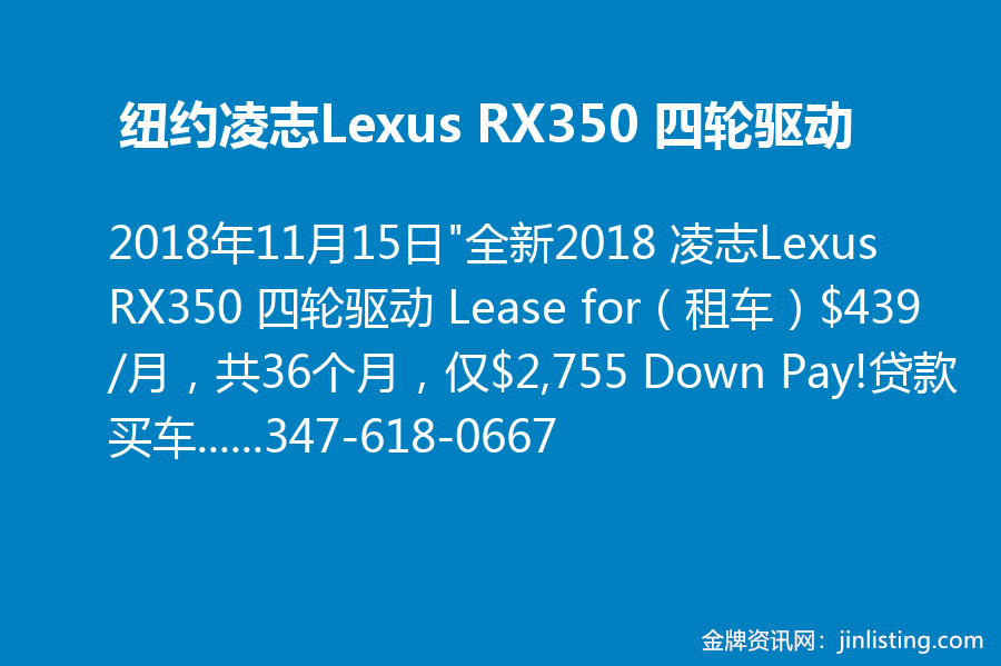 纽约凌志Lexus RX350 四轮驱动:347-618-0667