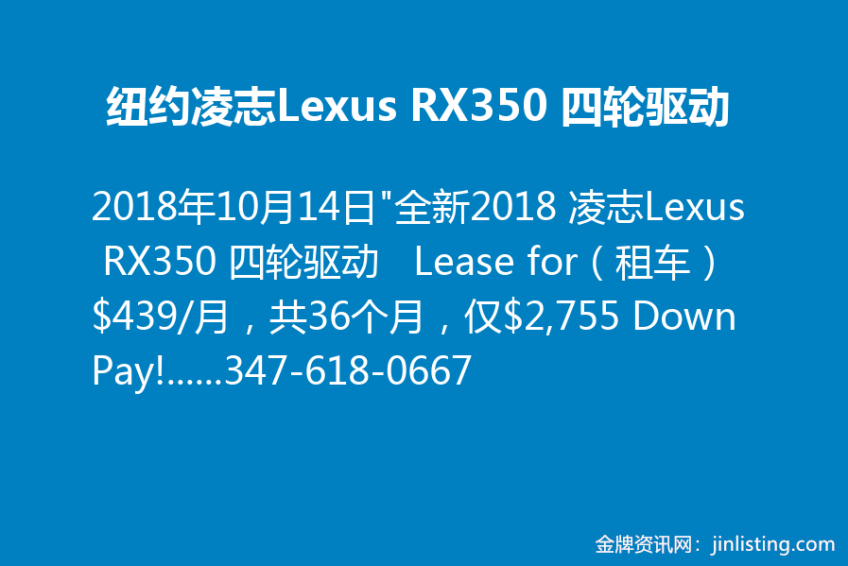 纽约凌志Lexus RX350 四轮驱动347-618-0667