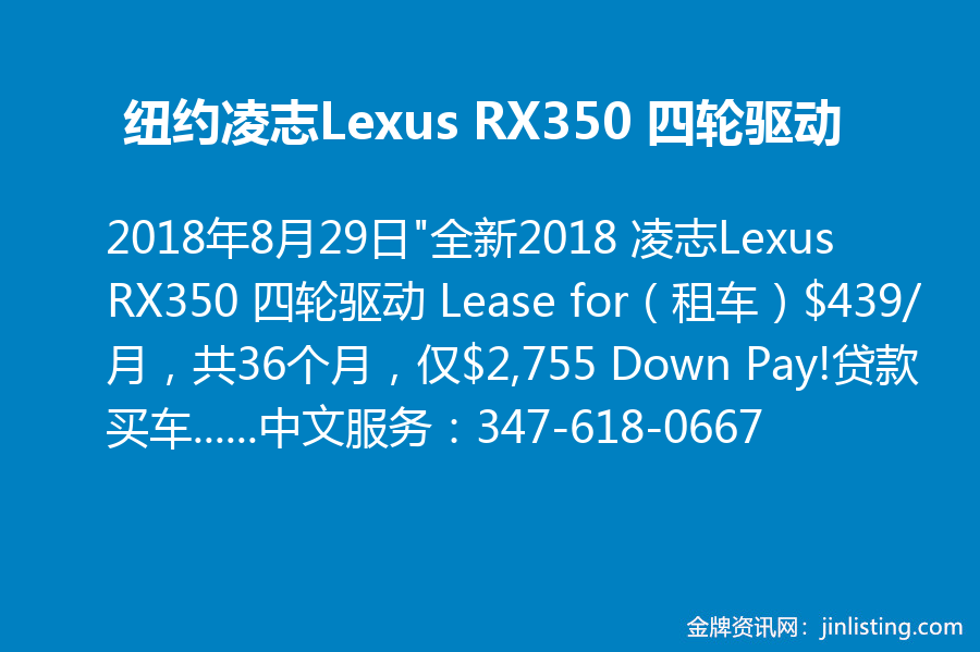 纽约凌志Lexus RX350 四轮驱动347-618-0667