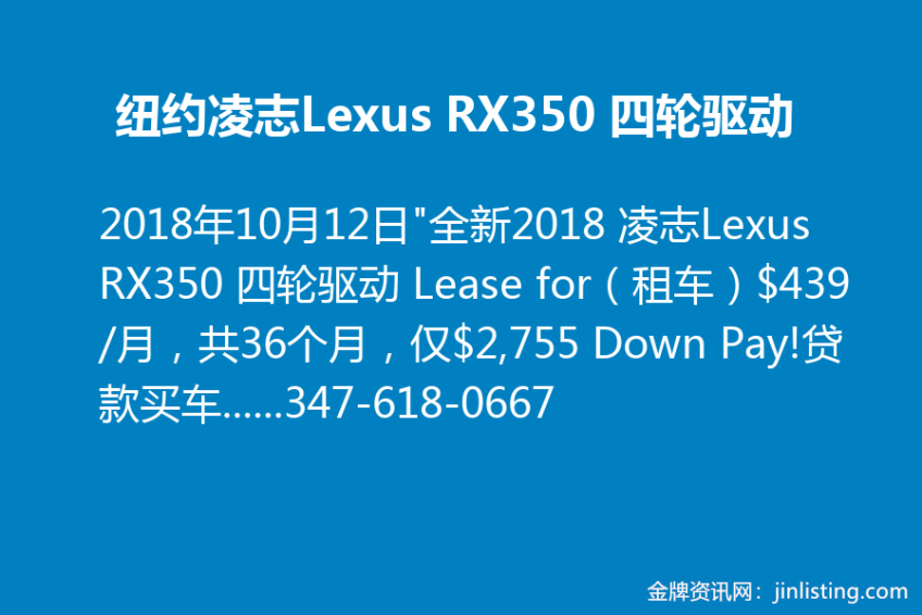 纽约凌志Lexus RX350 四轮驱动347-618-0667