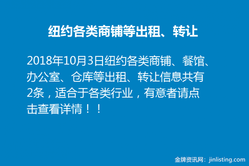 纽约各类商铺、餐馆、办公室、仓库等出租、转让