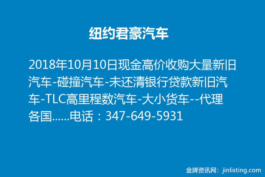 现金高价收购大量新旧汽车-碰撞汽车-未还清银行贷款新旧汽车-TLC高里程数汽车-大小货车–代理各国全新汽车-贷款利息低至0%起-价钱超低超低-欢迎咨询-电话:347-649-5931