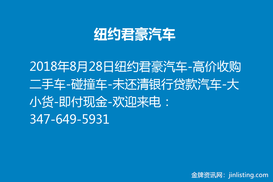 纽约君豪汽车-高价收购二手车-碰撞车-未还清银行贷款汽车-大小货-即付现金-欢迎来电:347-649-5931
