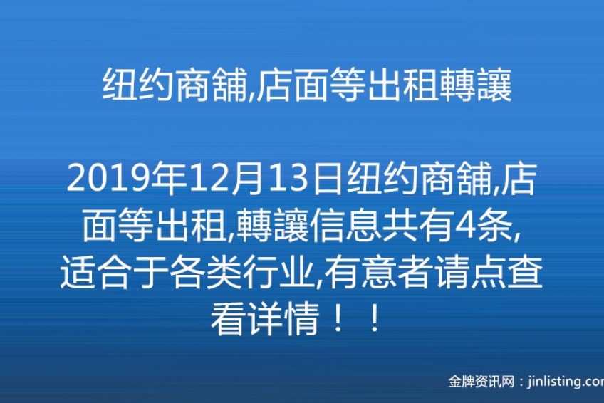 纽约商舖,店面等出租轉讓