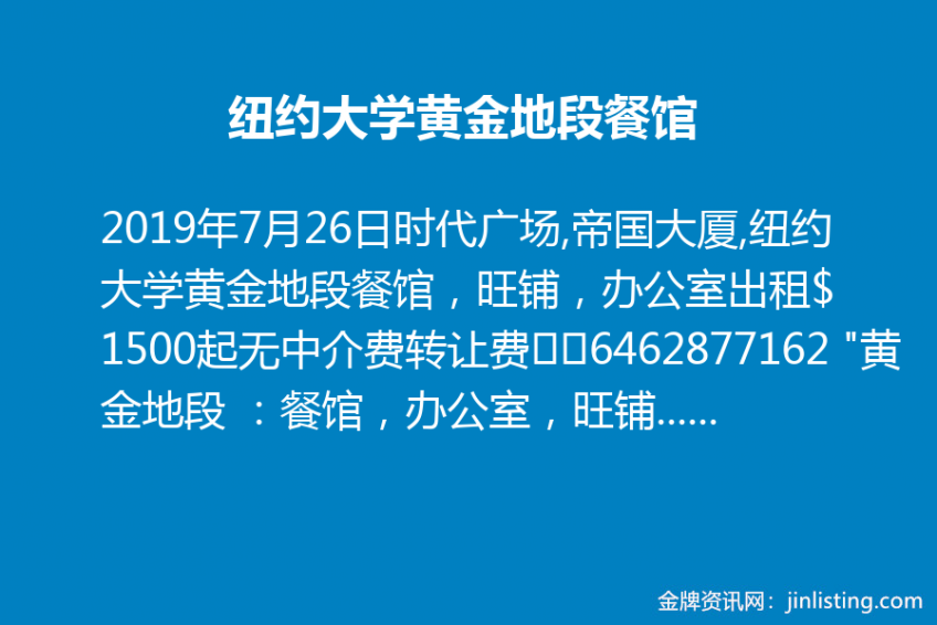 时代广场,帝国大厦,纽约大学黄金地段餐馆,旺铺,办公室出租$1500起无中介费转让费☎️6462877162 “黄金地段 :餐馆,办公室,旺铺 举世瞩目最旺旺旺Location! 曼哈顿中城近Time Square 和 Bryant Park 地铁N,R,Q,S,1,2,3,7,A,B,C,C,E,F,S. M都在旁边,周围都是游客,”