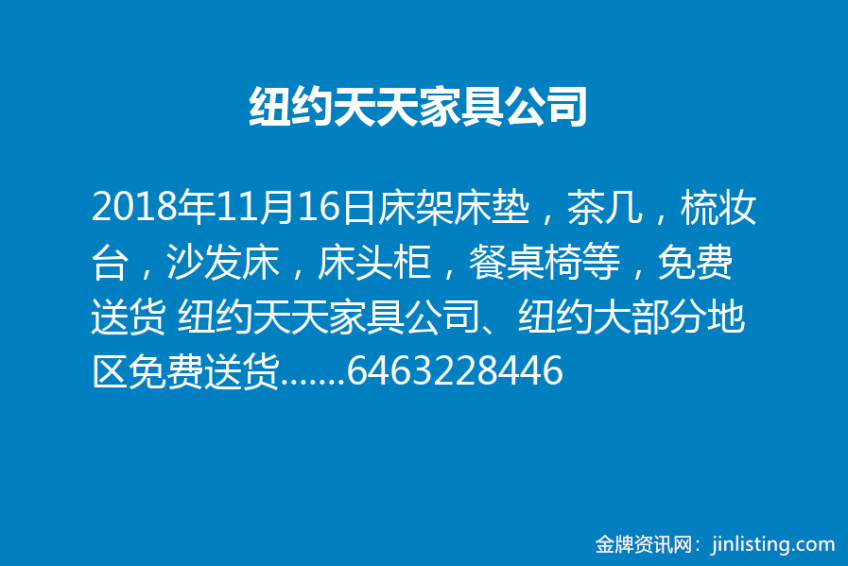 床架床垫,茶几,梳妆台,沙发床,床头柜,餐桌椅等,免费送货 纽约天天家具公司、纽约大部分地区免费送货上门安装,我们的微信号:jiaju6463228446,也可以直接扫描图中二维码,公司电话:6463228446. 价格优惠!
