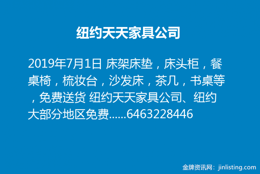 床架床垫,床头柜,餐桌椅,梳妆台,沙发床,茶几,书桌等,免费送货 纽约天天家具公司、纽约大部分地区免费送货上门安装,我们的微信号:jiaju6463228446,也可以直接扫描图中二维码,公司电话:6463228446. 价格优惠!