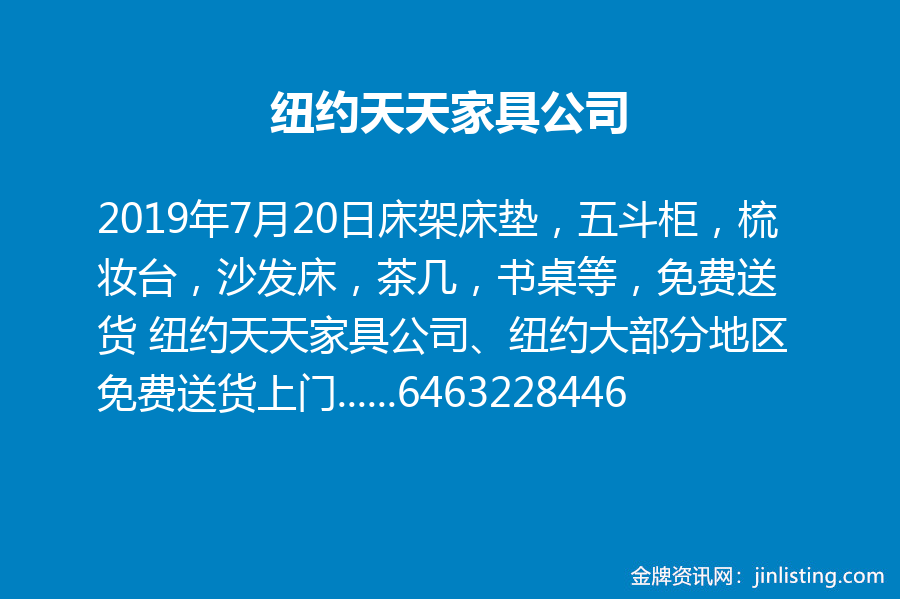 床架床垫,五斗柜,梳妆台,沙发床,茶几,书桌等,免费送货 纽约天天家具公司、纽约大部分地区免费送货上门安装,我们的微信号:jiaju6463228446,也可以直接扫描图中二维码,公司电话:6463228446. 价格优惠!