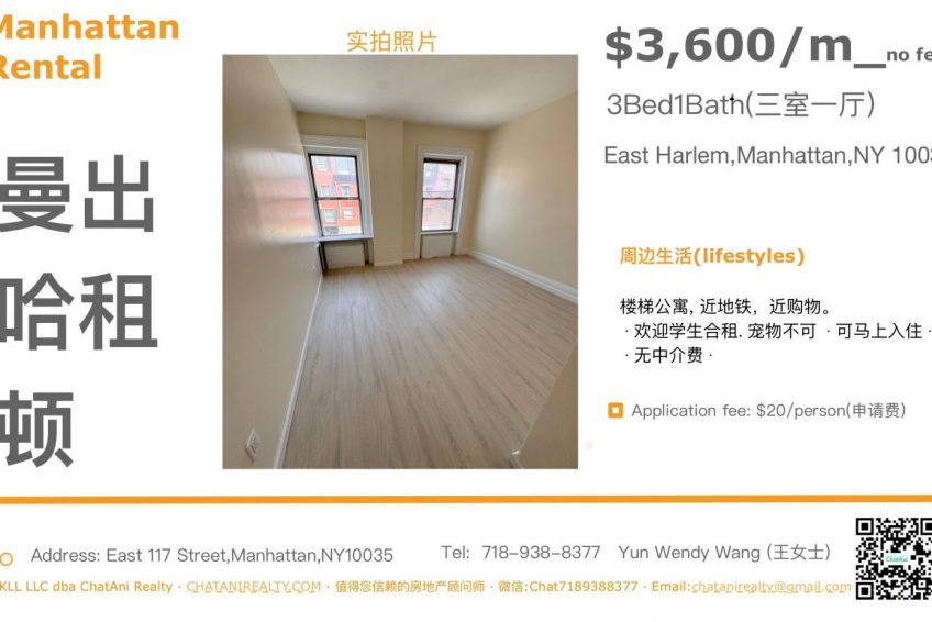 纽约曼哈顿中城多套公寓公展$2550-3600/月无佣金