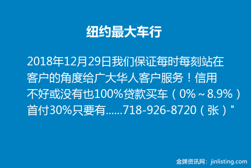 “纽约最大车行!3000多台二手车、我们保证每时每刻站在客户的角度给广大华人客户服务!