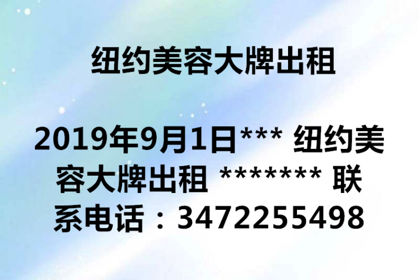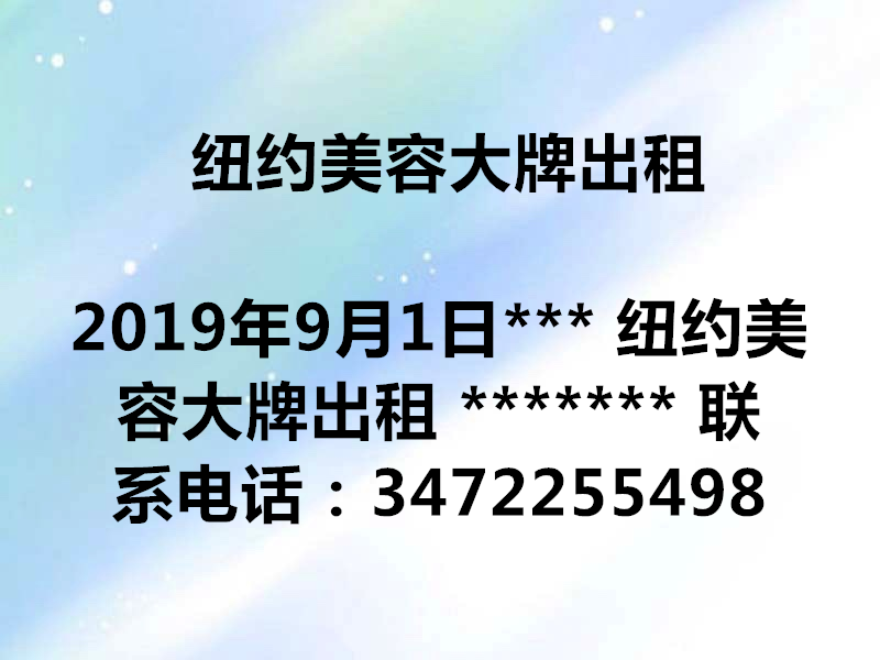 *** 纽约美容大牌出租 ******* 联系电话:3472255498