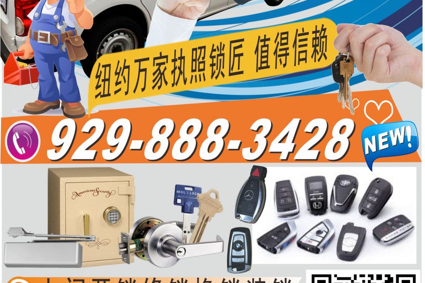 纽约执照锁匠/上门开锁修换装锁/配汽车芯片钥匙遥控器/开保险柜/电话微信:9298883428/皇后区法拉盛/布鲁克林/曼哈顿/布朗克斯/长岛/史丹顿岛/24小时服务