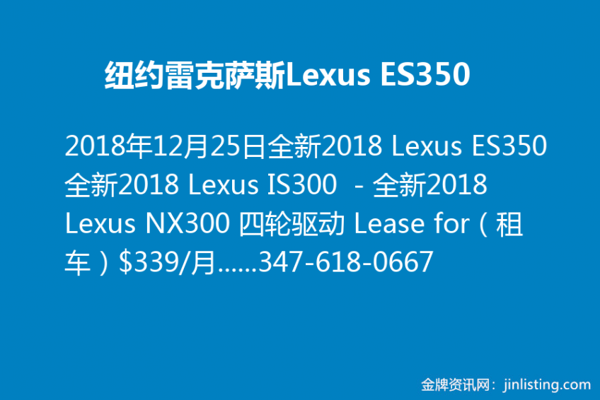 纽约雷克萨斯Lexus ES350 / IS300 / NX300 347-618-0667