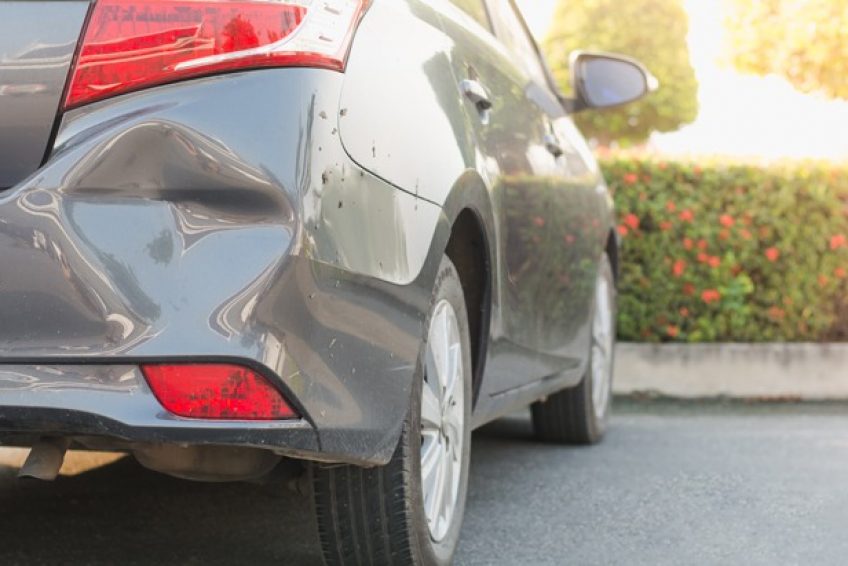 先使用锤子敲击变形部位使得其恢复到原来的大概样子,再用钣金校正工具,将小部分凹陷的地方拉回来。经过一轮钣金校正工作后,接下来进行刮灰工作。已经变形的部位使用打磨机进行打磨,打磨至与车身线条保持一致,使其变得光滑。