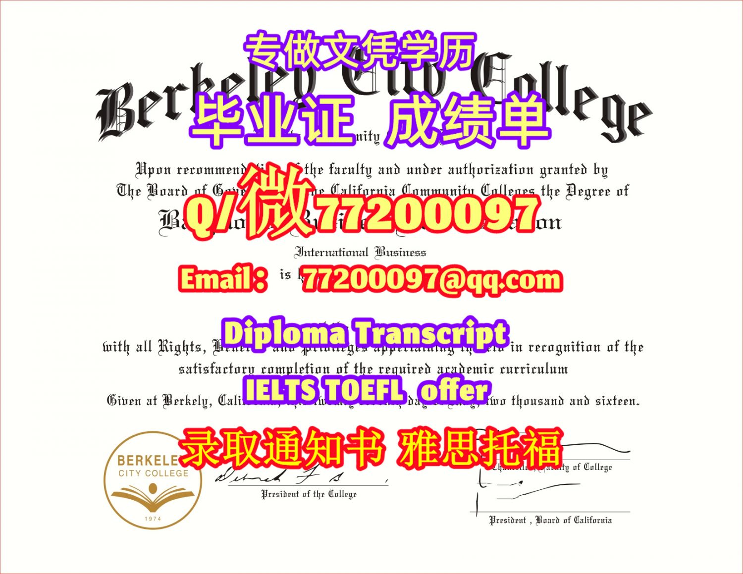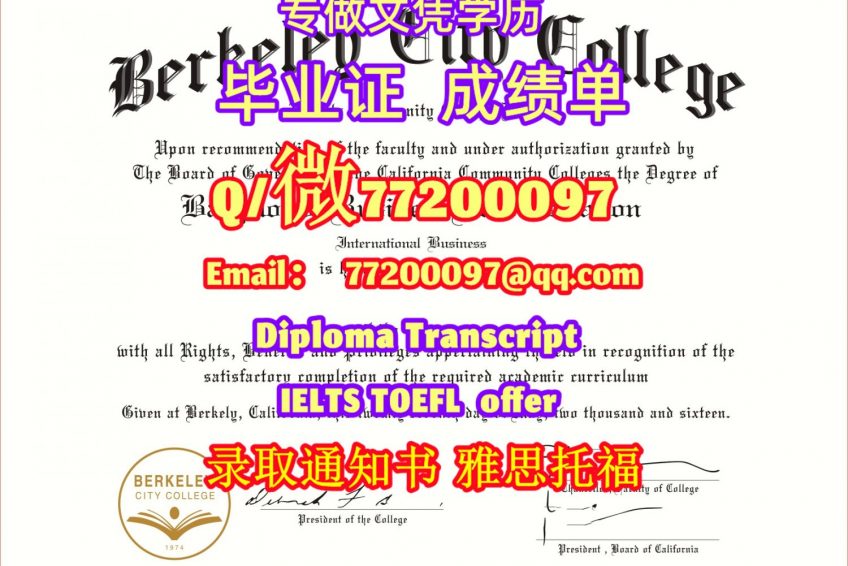 美国学历升级BCC毕业证书定制伯克利城市学院学位证书Q/微:77200097有BCC文凭证书精仿BCC学位证书能办BCC成绩单制作伯克利城市学院文凭证书雅思托福Berkeley City College Bachelor/Master Diploma Degree Transcript