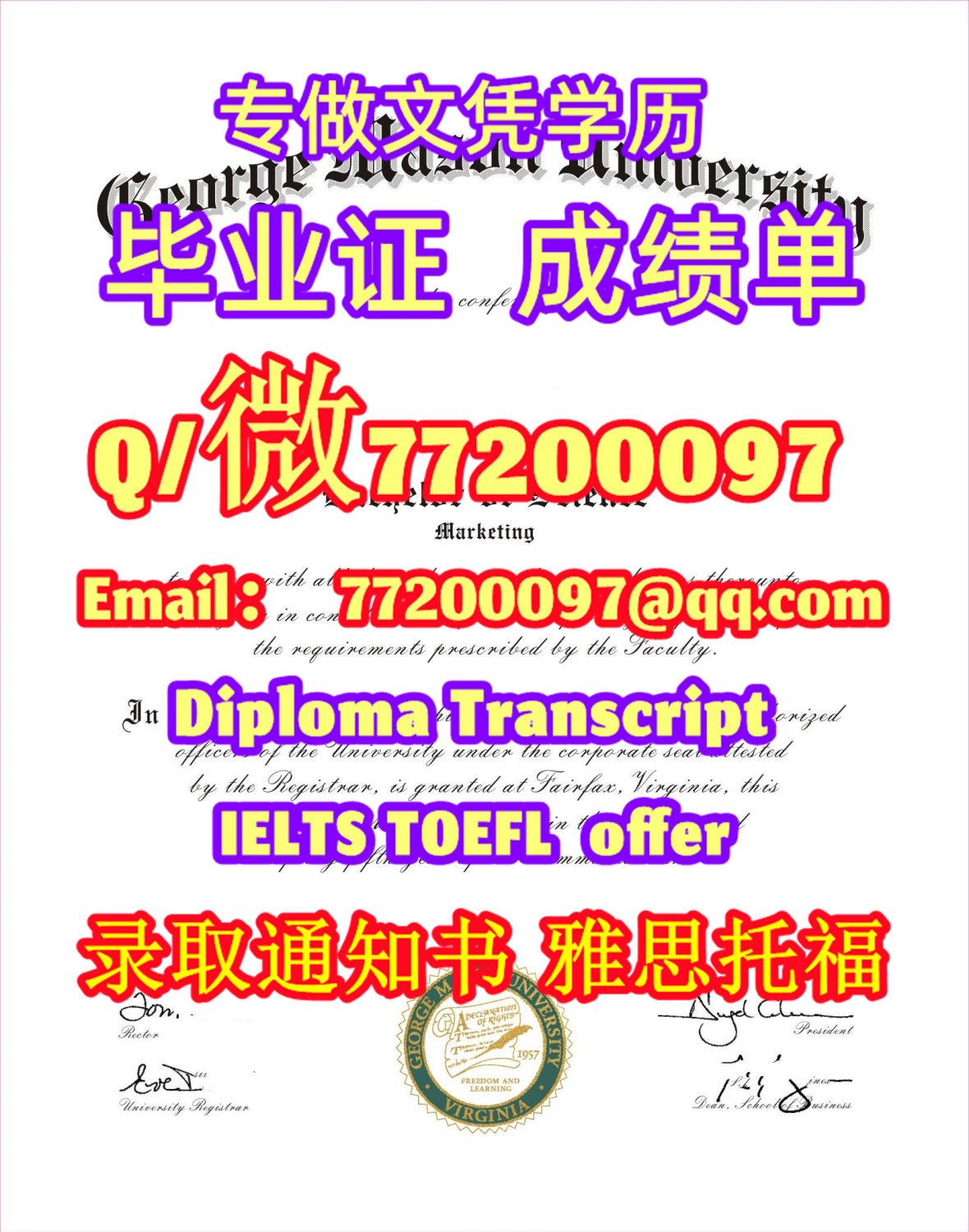 美国学历升级GMU毕业证书定制乔治梅森大学学位证书Q/微:77200097有GMU文凭证书精仿GMU学位证书能办GMU成绩单制作乔治梅森大学文凭证书雅思托福George Mason University Bachelor/Master Diploma Degree Transcript