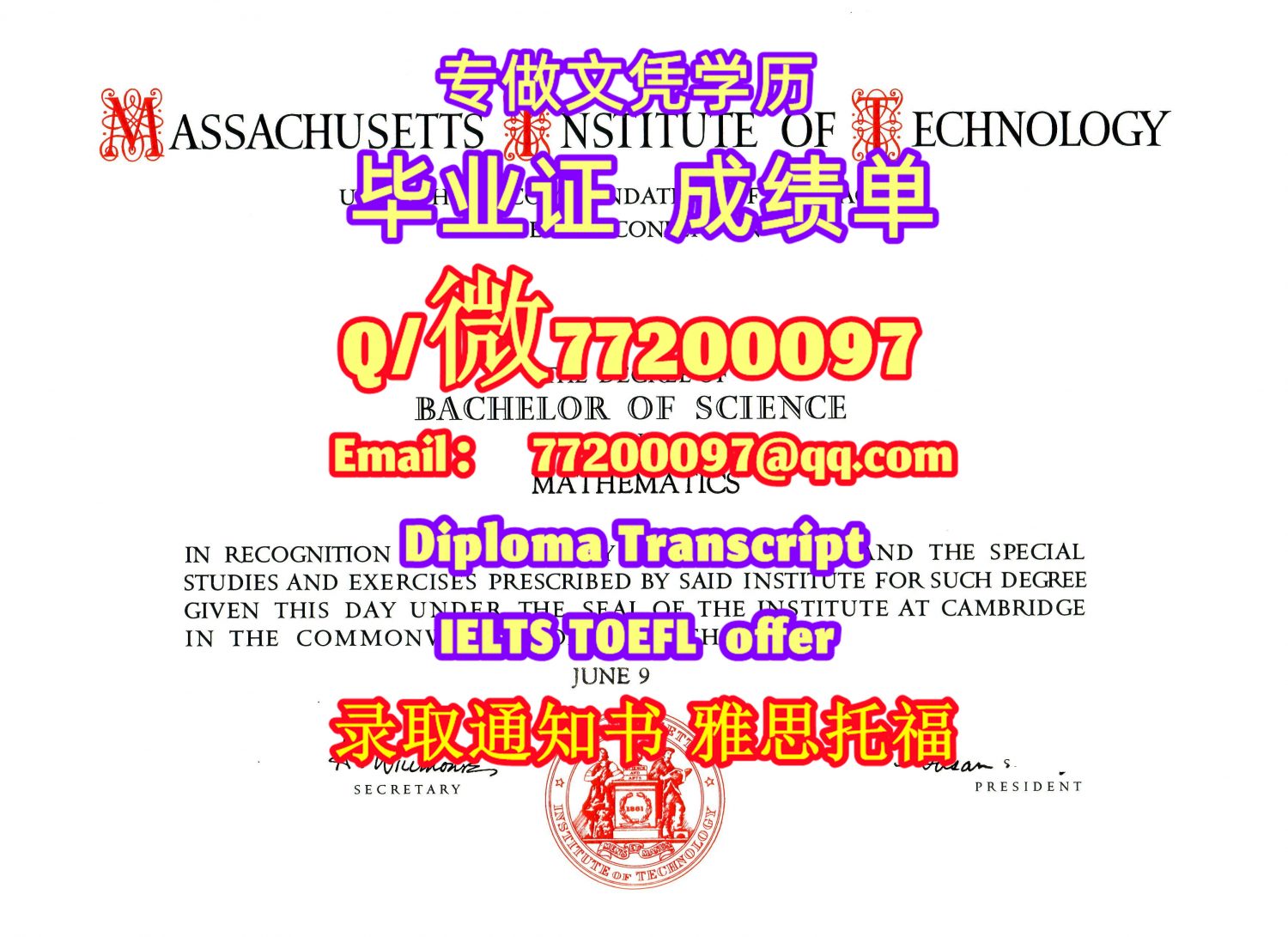 美国学历升级MIT毕业证书定制麻省理工学学位证书Q/微:77200097有MIT文凭证书精仿MIT学位证书能办MIT成绩单制作麻省理工学文凭证书雅思托福Massachusetts Institute of Technology Bachelor/Master Diploma Degree Transcript