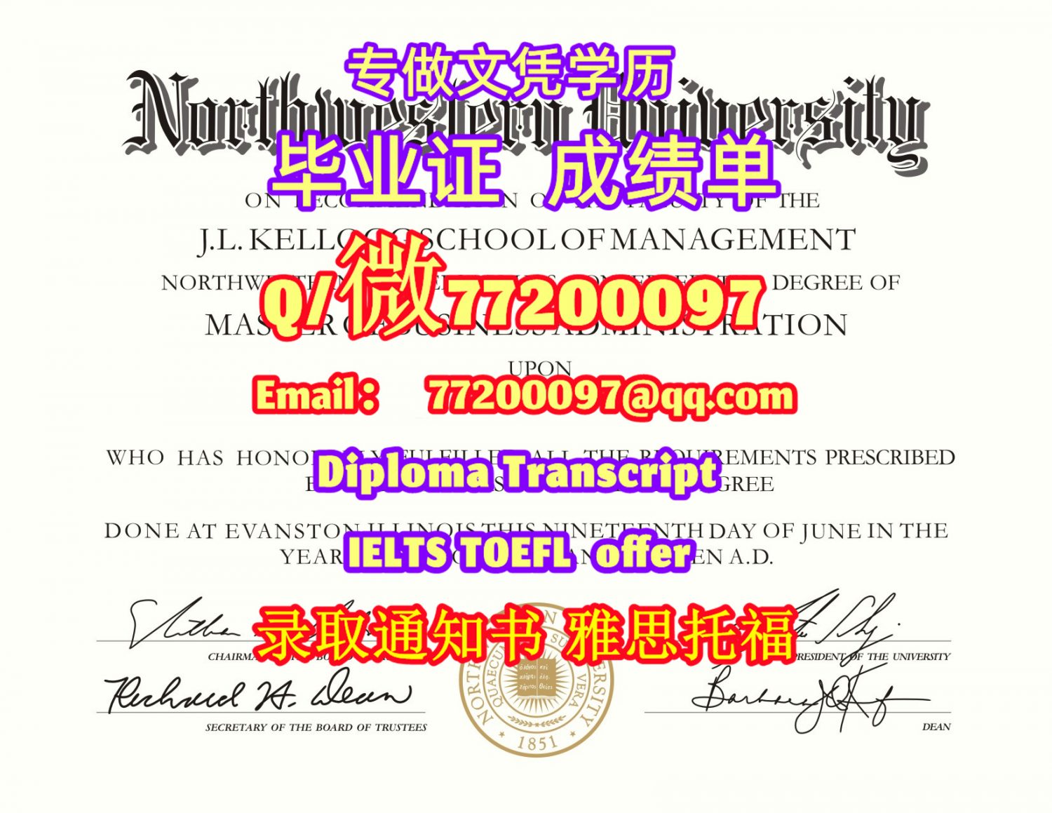 美国学历升级NWU毕业证书定制西北大学学位证书Q/微:77200097有NWU文凭证书精仿NWU学位证书能办NWU成绩单制作西北大学文凭证书雅思托福Northwestern University Bachelor/Master Diploma Degree Transcript