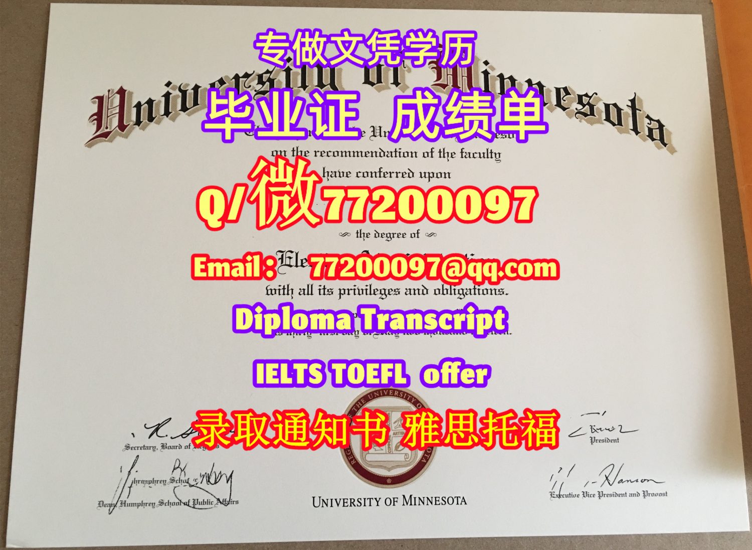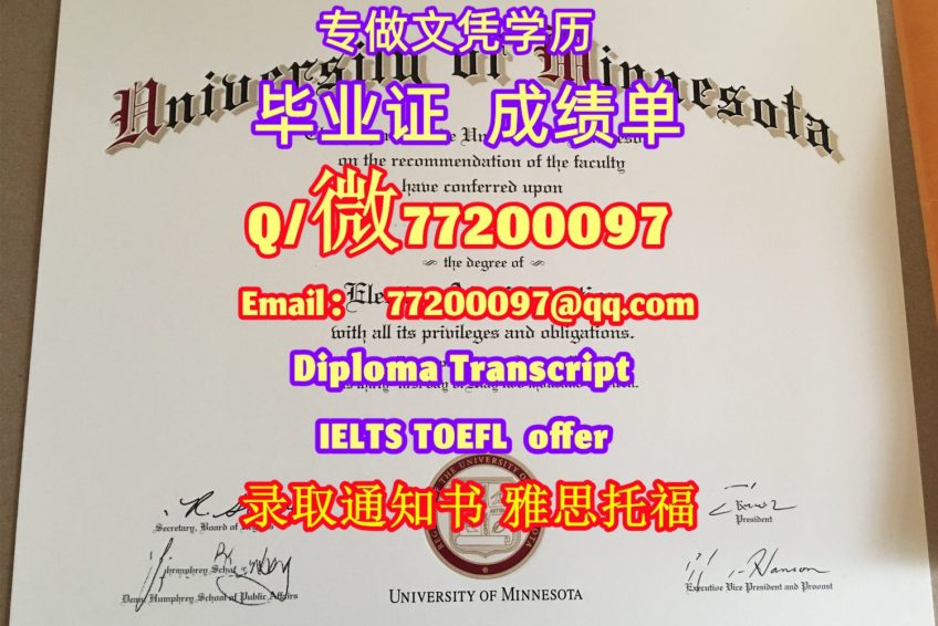美国学历升级UMN毕业证书定制明尼苏达大学双城分校学位证书Q/微:77200097有UMN文凭证书精仿UMN学位证书能办U of M成绩单制作明尼苏达大学双城分校文凭证书雅思托福University of Minnesota Twin Cities Bachelor/Master Diploma Degree Transcript