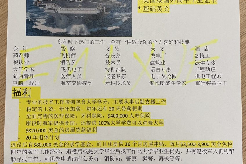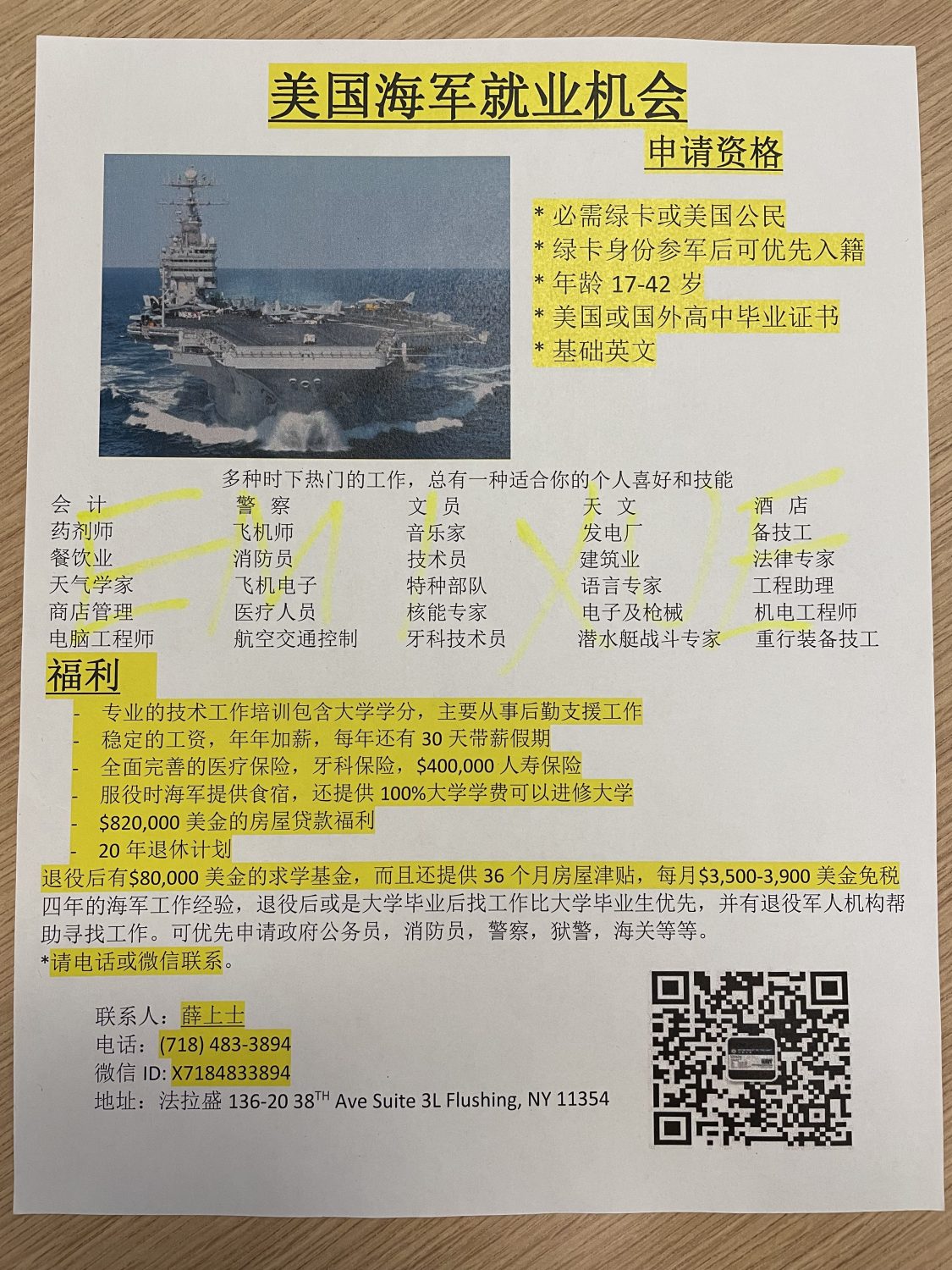 –入伍后可以同时工作和100%免费上大学,退伍后还有8万美金求学基金(POST 911 GI BILL),而且每个月还有住房津贴(纽约市4千),这个福利还可以转给配偶和子女