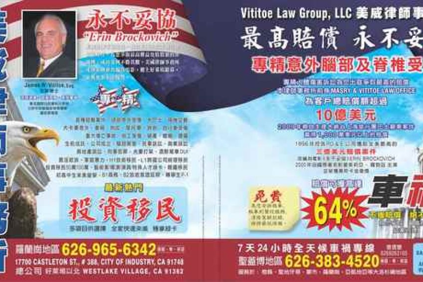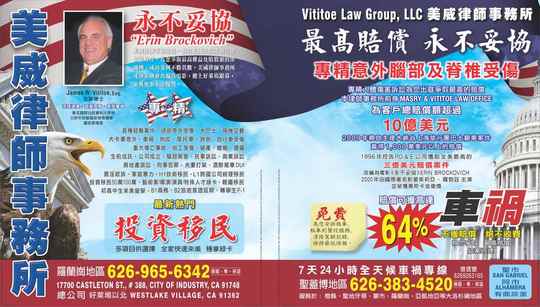 美威律師事務所Vititoe Law Group,LLC ,美威律師有35年法律經驗,國家級權威,國際著名大律師,多次往返中美兩國,深謀遠慮,認真負責,態度審慎,處處以客戶權益為重,具有很的高信譽【成功率極高】本事務所7天24小時全天候電話專線 (626)926-3165,或(626)383-4520 通國丶粵丶英語。E-Mail:rowlandlaw@gmail.com. 微信號:w6269263165.
