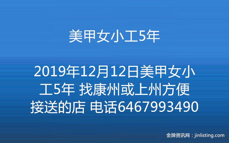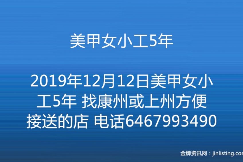 美甲女小工5年 找康州或上州方便接送的店 电话6467993490