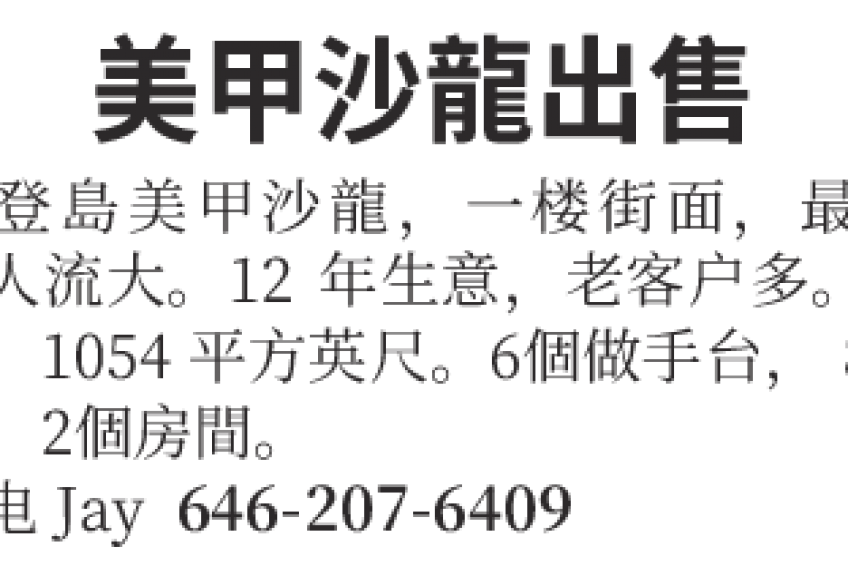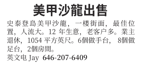 史泰登島美甲沙龍,一楼街面,最佳位置,人流大。12 年生意,