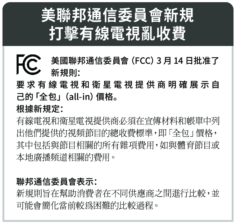 要求有線電視和衛星電視提供商明確展示自                 己的「全包」(all-in)價格。