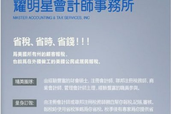 耀明星會計師事務所-三藩灣區會計和報稅服務 MASTER ACCOUNTING & TAX SERVICES, INC