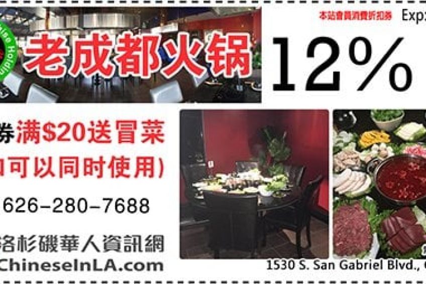 一句話再次成為被傳頌的經典:“夢想還是得有的,萬一實現了呢?”簡單一句話,給了萬千80丶90後繼續奮鬥下去的理由,為社會傳來源源不斷的正能量。對於諸位是不是有自己的夢想,你我真的是不得而知,但老成都火鍋在麻辣火鍋成行成市的洛杉磯脫穎而出,樹立了自己的風格,吃貨們倒是知道的。接下來就是見證老成都火鍋的牛掰的時刻。張氏傳人繼承的老成都火鍋話說民國年間,成都劉姓大家閨秀待字閨中,途徑重慶朝天門碼頭,一見擺麻辣火鍋攤的張郎便情不自己,張郎更是以身相許,上門成都,老成都火鍋一時傳為佳話。有道是, 人生難得幾回醉,唯有火鍋解千愁。正是因為來自老成都的火鍋,辣得你大汗淋漓,鮮得你爽滑細膩。老成都火鍋張氏傳人丶忍不住地唱出“深深地愛上你”,從此只鍾意火鍋,不嘗其它,專赴洛杉磯,專注老成都鍋中鍋,以表對吃貨之愛意。原料新鮮,精選食以鮮為先,老成都的肉菜從簽約供應商中買進, 品質是同行中最好的。鍋湯即點即造,不浪費不存留。無論是肉還是湯,都一吃一口鮮。你以為老成都火鍋只一個辣字了得? NO!告訴你,一個成功的火鍋,可不只是辣這麼簡單,而是要辣得你合不攏嘴的同時,要爽得你停不下口!張郎當年的口號就是:“辣椒牛油好搭
