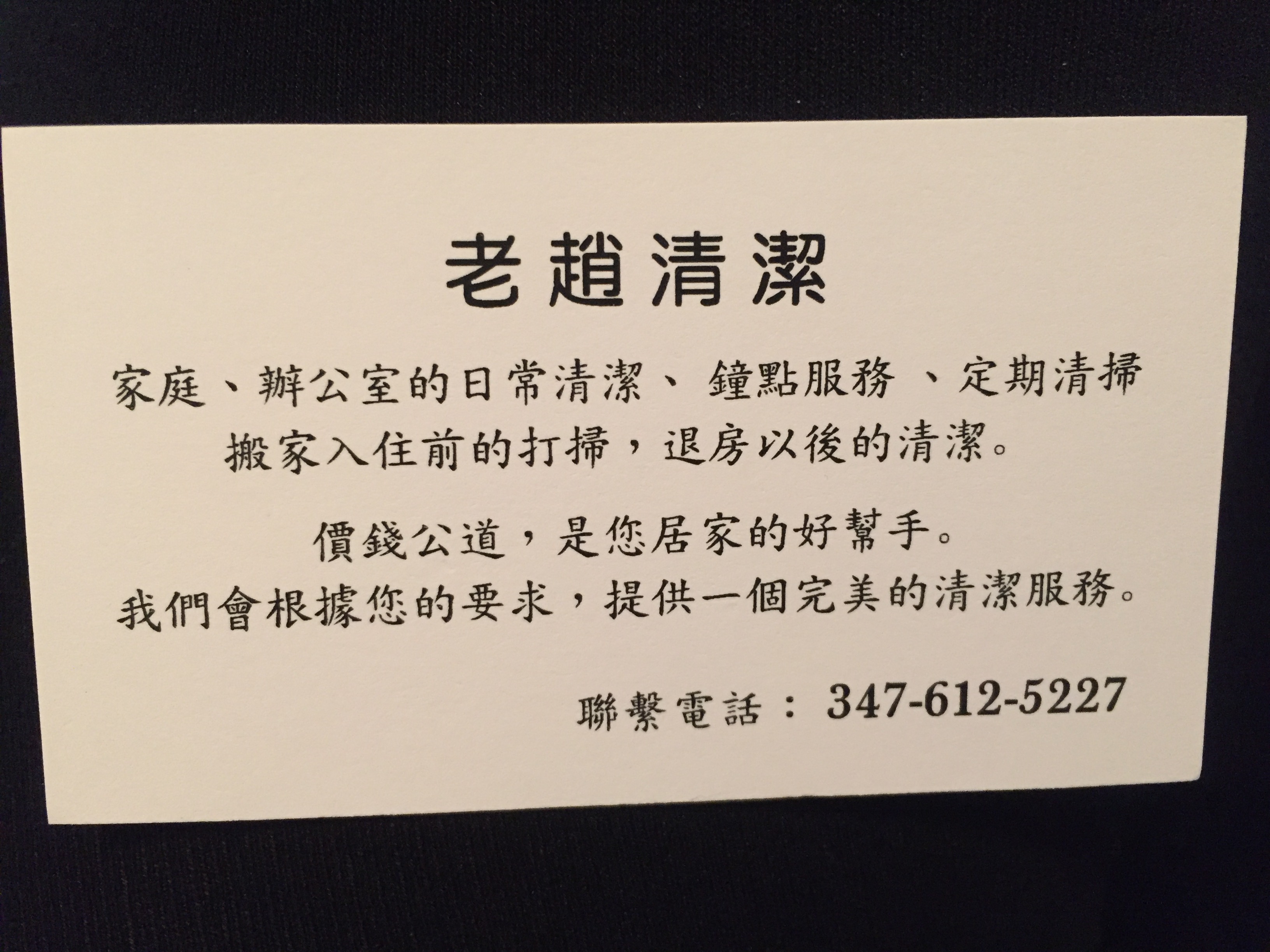 老趙清潔 347-612-5227 纽约日常清潔 鐘點服務 法拉盛定期清掃 入住前清掃