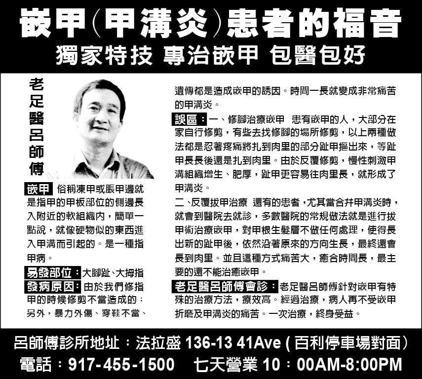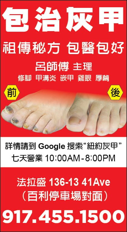 呂師傅足疗诊所/纽约灰指甲/法拉盛修脚/祖传秘方/灰甲/嵌甲