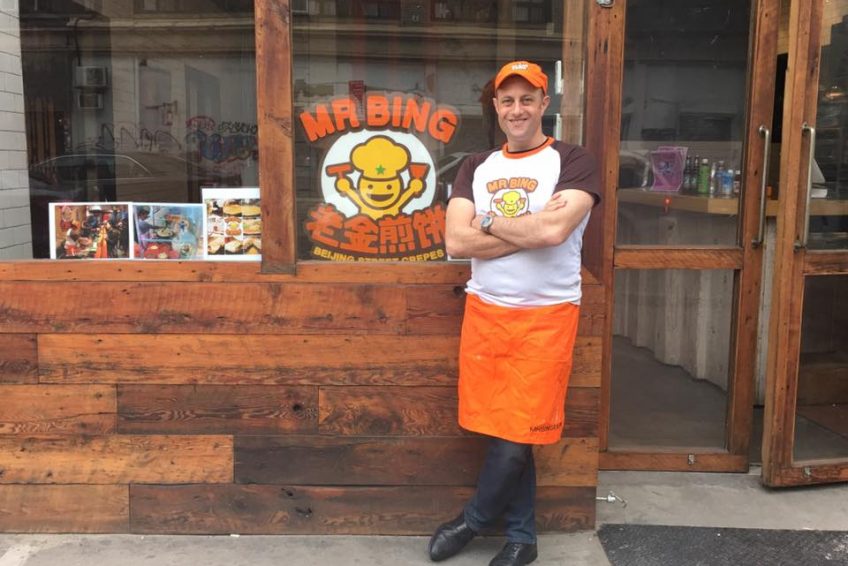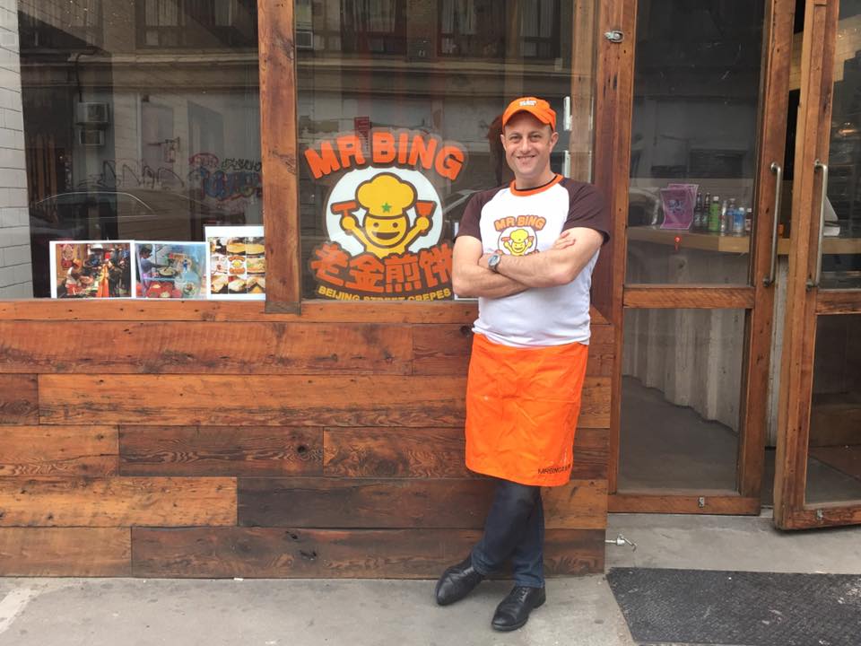 老金的人生经历很丰富,毕业于哥伦比亚大学东亚研究硕士专业,在投资银行工作过一些年从事股票交易,还做过记者。在去中国北京的时候,老金爱上了街边小吃,每天早上都去买三轮车煎饼摊卖的煎饼,下午和晚上也要吃煎饼。作为煎饼果子的超级粉丝,老金把首家煎饼果子店开设在香港。开业前,他先在中国北方品尝了40 种不同的街头摊饼,选中最喜欢的一家买下配方。然后,他把制作煎饼果子的厨师请来香港,专门向她学做煎饼。老金的煎饼果子店吸引了很多从中国北方来香港从事金融工作的中国人,很快他就开设了第二家老金煎饼。而在美国,大部分中餐是由中国南方移民经营,老金在海外旅居14年后,计划把中国北方口味的食物引进纽约。