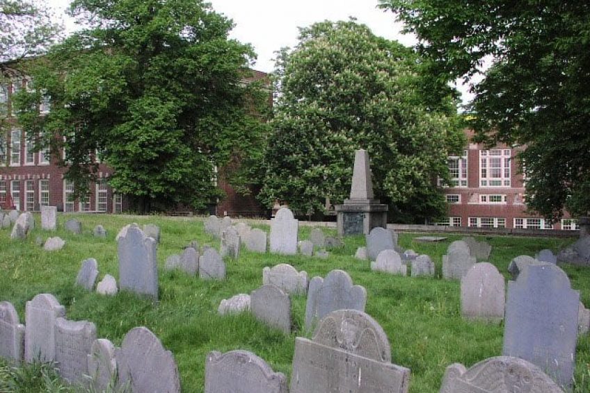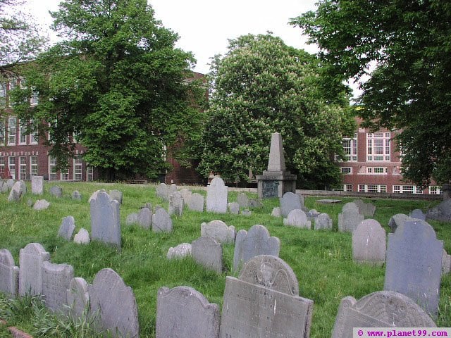 考普山墓地是波士顿第二古老的墓地,建于1660年,以最早的土地拥有者威廉·考普的名字而命名。这里最古老的墓地属于考普先生的后代。大概共有10000多座墓地。长眠在此的除了保罗·瑞维尔、萨缪尔·亚当斯、约翰·汉考克等独立革命中的风云人物,更多的是默默无闻的普通百姓。大多数墓碑低矮、简陋。这里是波士顿北边的最高点,英军曾在邦克山的战役里以此为据点攻占了查尔斯城。
