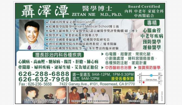 聂泽潭 医学博士内科,中老年,家庭全科 626-632-7958