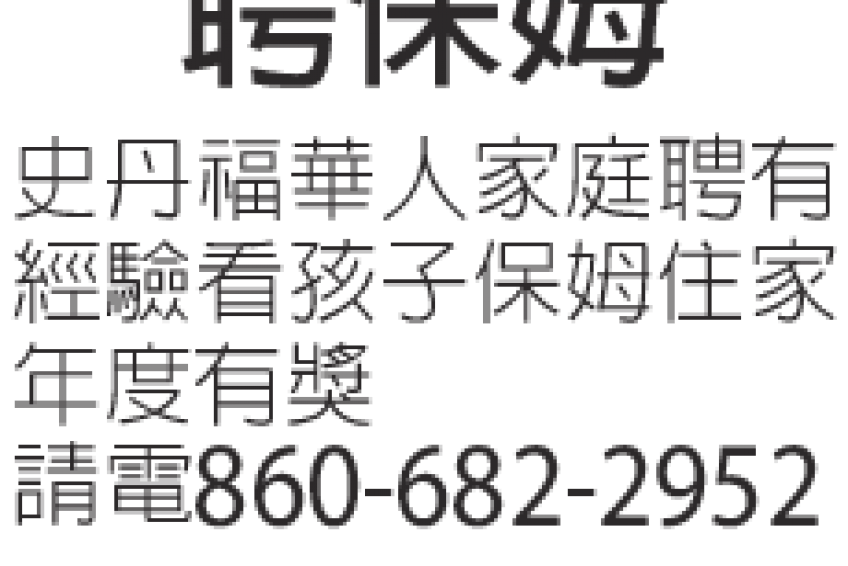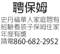 史丹福华人家庭聘有经验看孩子保姆住家年度有奖860-682-2952