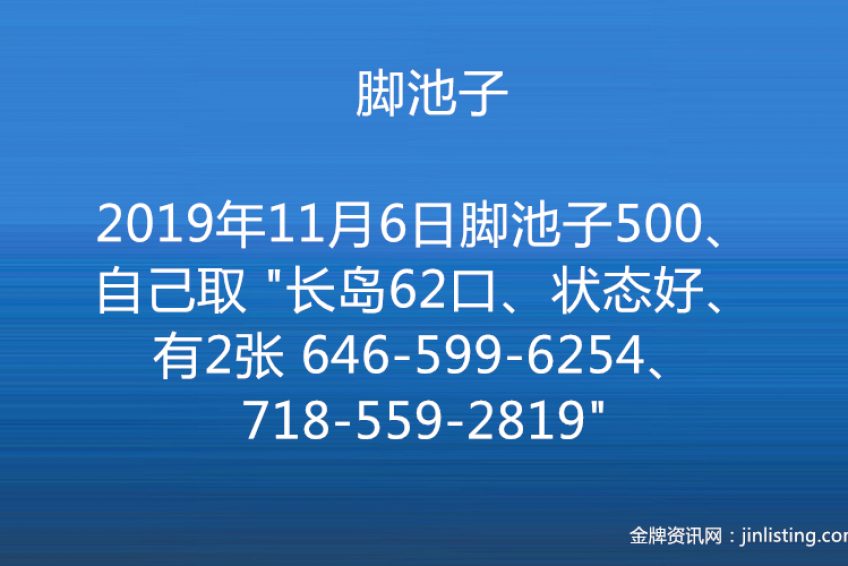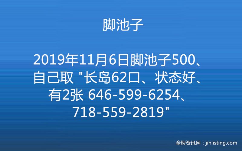 脚池子500、自己取 “长岛62口、状态好、有2张 646-599-6254、718-559-2819”