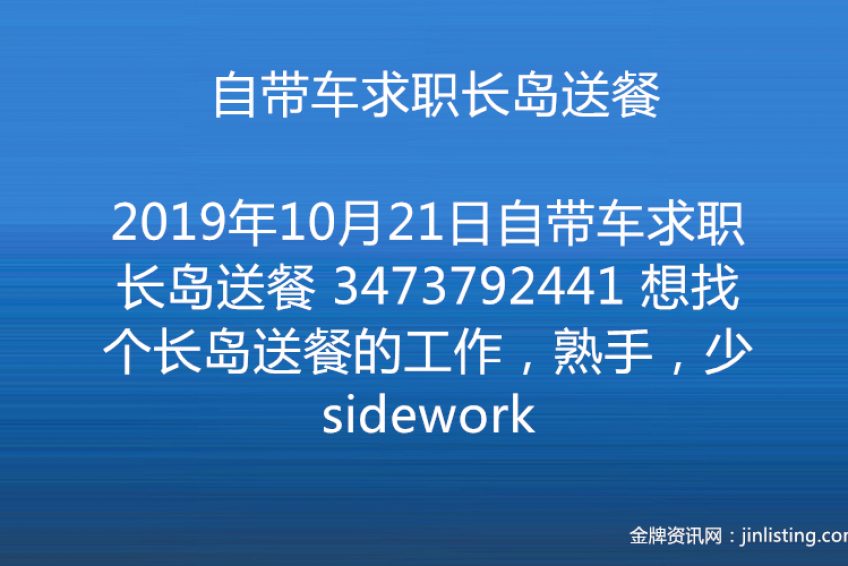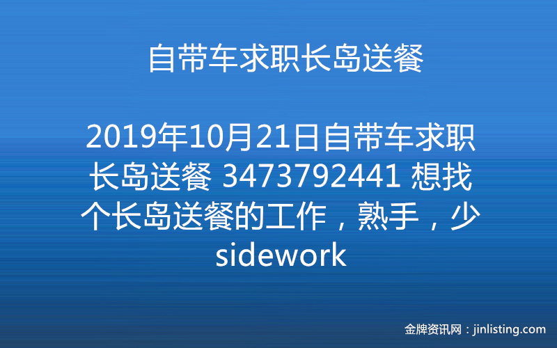 自带车求职长岛送餐 3473792441 想找个长岛送餐的工作,熟手,少sidework