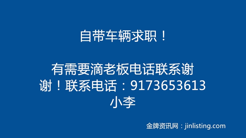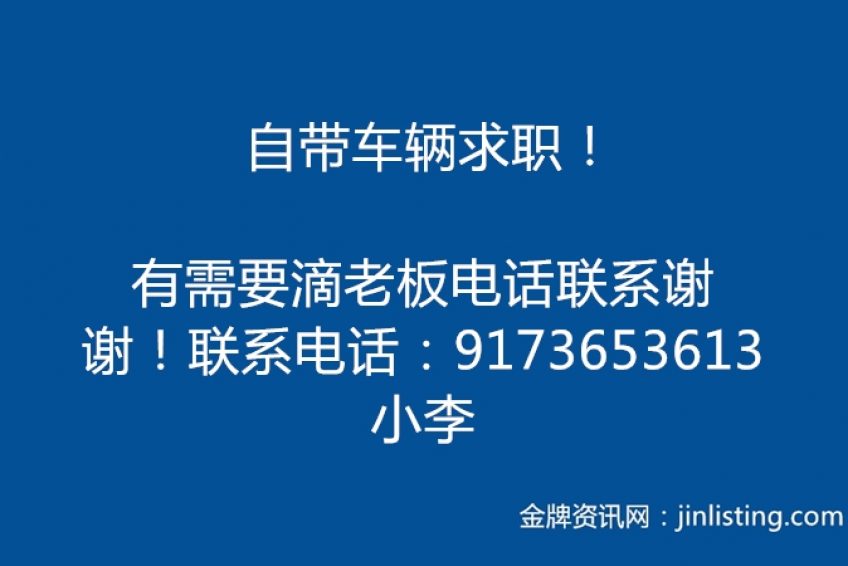 自带车辆求职!有需要滴老板电话联系谢谢!联系电话:9173653613 小李