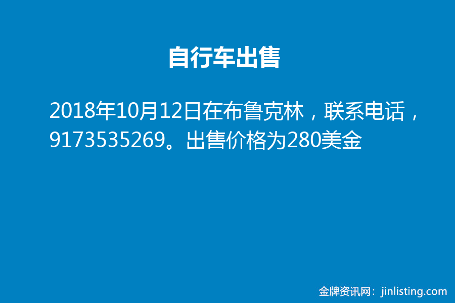 自行车出售 在布鲁克林,联系电话,9173535269。出售价格为280美金
