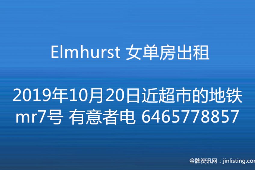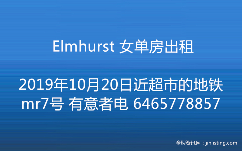 Elmhurst 女单房出租 近超市的地铁mr7号 有意者电 6465778857