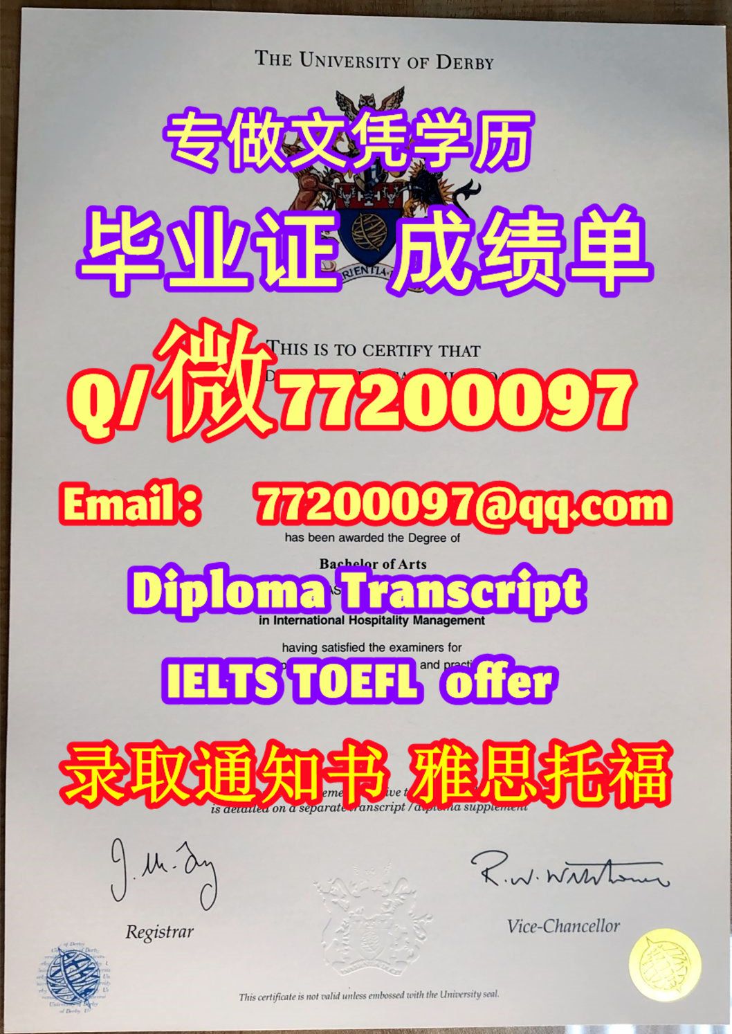 英国学历升级Derby毕业证书定制德比大学学位证书Q/微:77200097有Derby文凭证书精仿Derby学位证书能办Derby成绩单制作德比大学文凭证书雅思托福University of Derby Diploma Degree Transcript