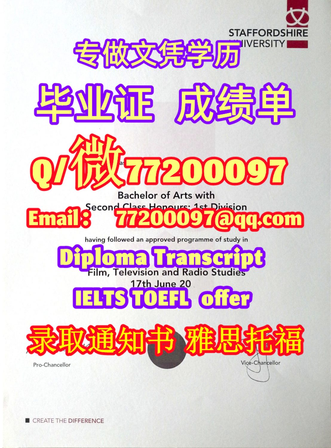 英国学历升级taffsUni毕业证书定制斯坦福德郡大学学位证书Q/微:77200097有StaffsUni文凭证书精仿StaffsUni学位证书能办StaffsUni成绩单制作斯坦福德郡大学文凭证书雅思托福Staffordshire University Diploma Degree Transcript