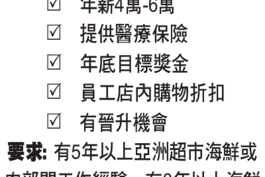 要求:有5年以上亚洲超市海鲜或肉部门工作经验。有3年以上海鲜或肉部门采购和管理经验。有意者请发简历:bowen@freshimarket.com或微信:koubowen